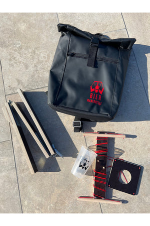 1. Öffnet den Rucksack und nehmt alle losen Teile heraus.
